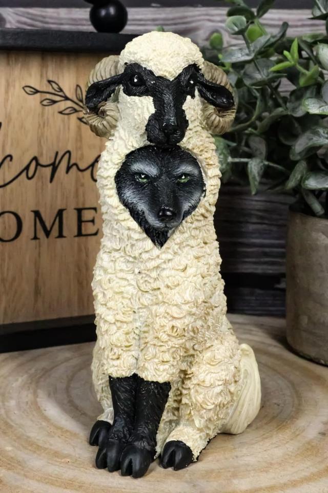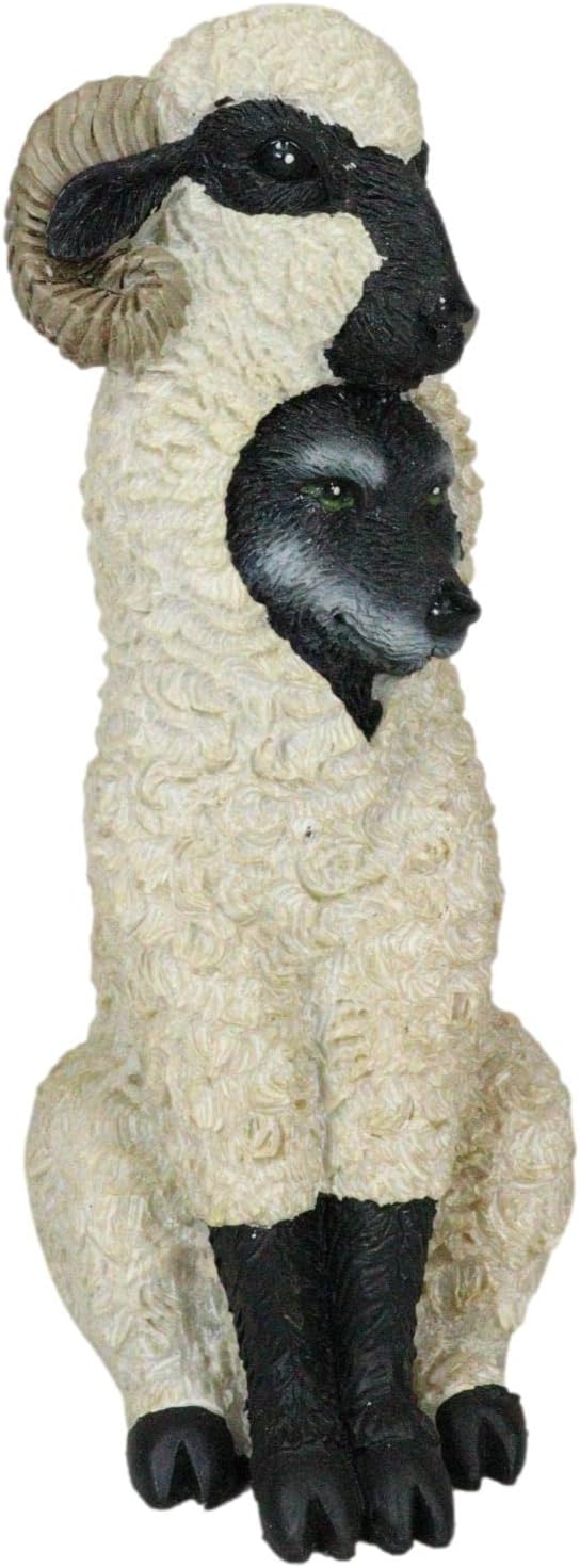 【Ebros Dupers Collection Wolf in Sheep Clothing Statue 5.75" TallCrafty Wild Direwolf in Ram Sheep Costume Decor Figurine Collectible】