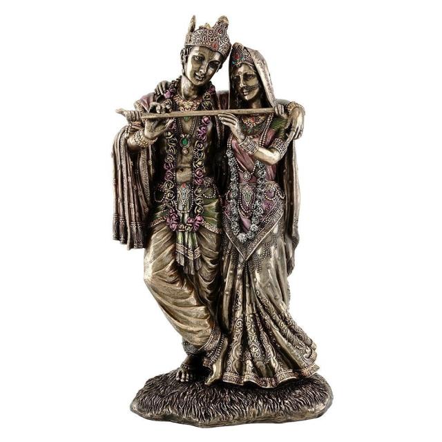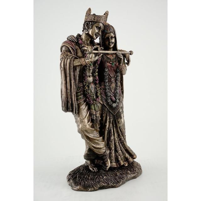 【11.5 -Inch Radha & Krishna Hindu Divine Love Real Bronze Powder Cast Statue】