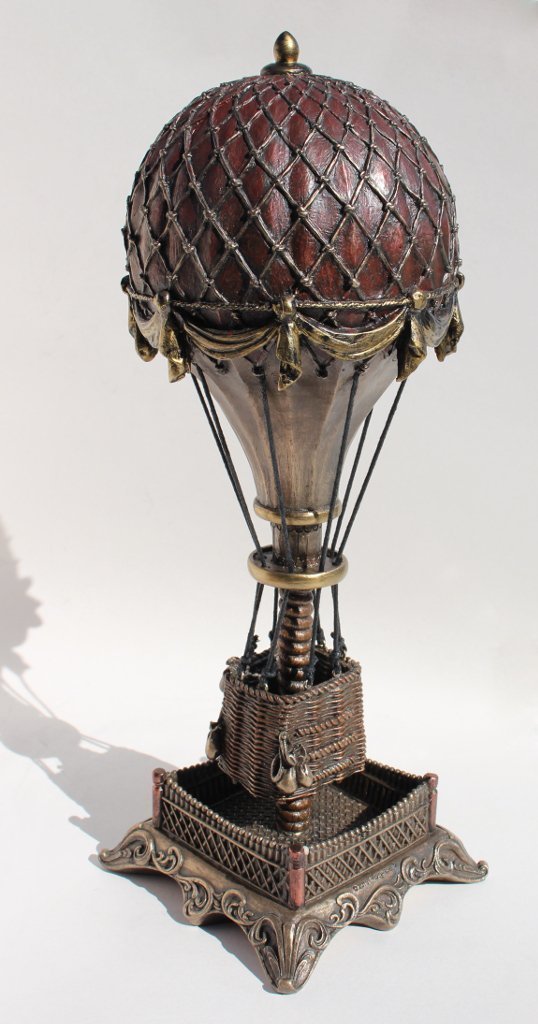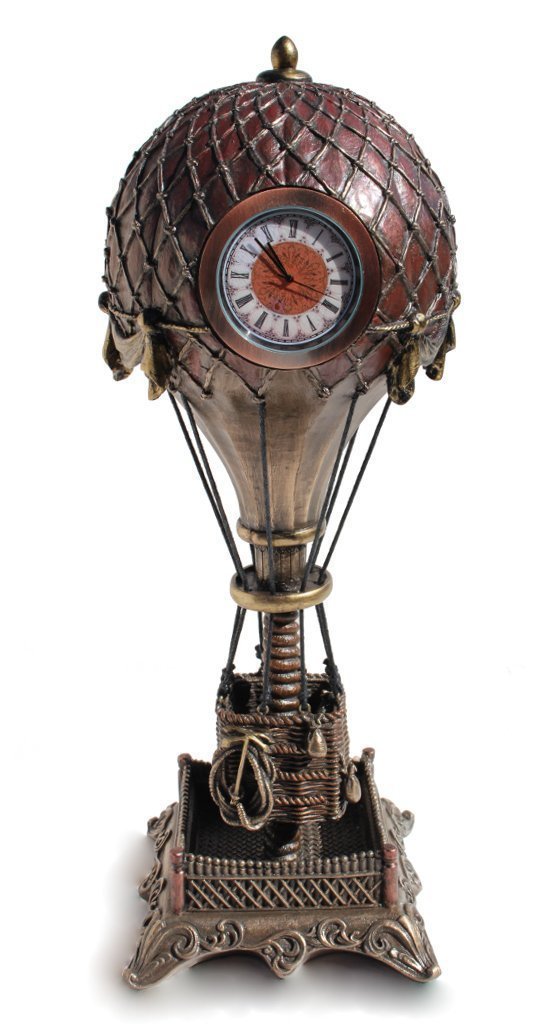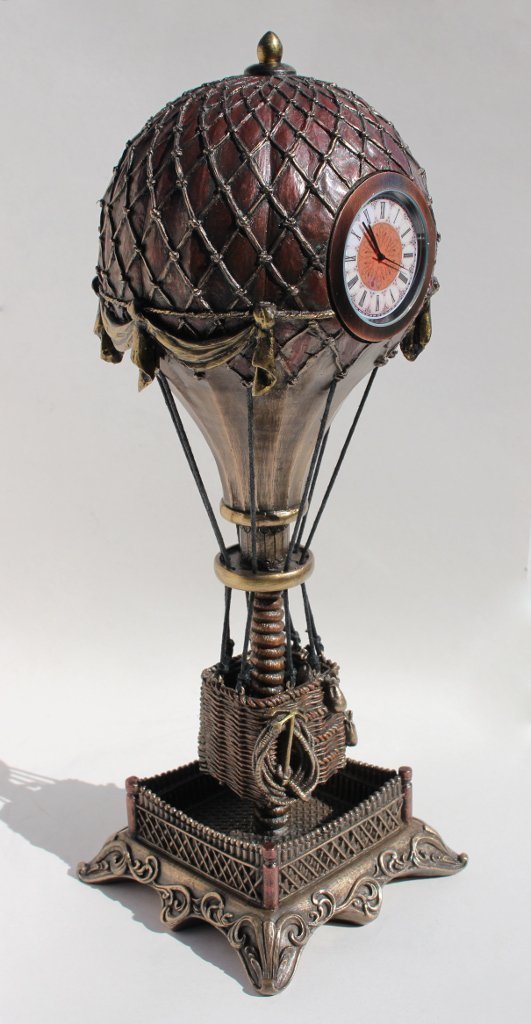 【Steampunk Hot Air Balloon with Clock Statue Sculpture Cold Cast Bronze】