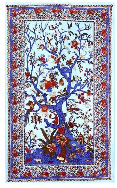 生命の樹 壁掛けタペストリー(ブルー色)