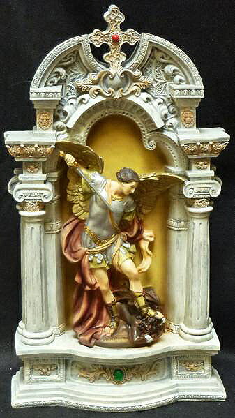 聖天使ミカエル 悪魔を打破する彫像(壁龕)置物 壁掛けオブジェ/守護天使 カトリック教会 祭壇 洗礼 福音 聖霊 プレゼント贈り物(輸入品