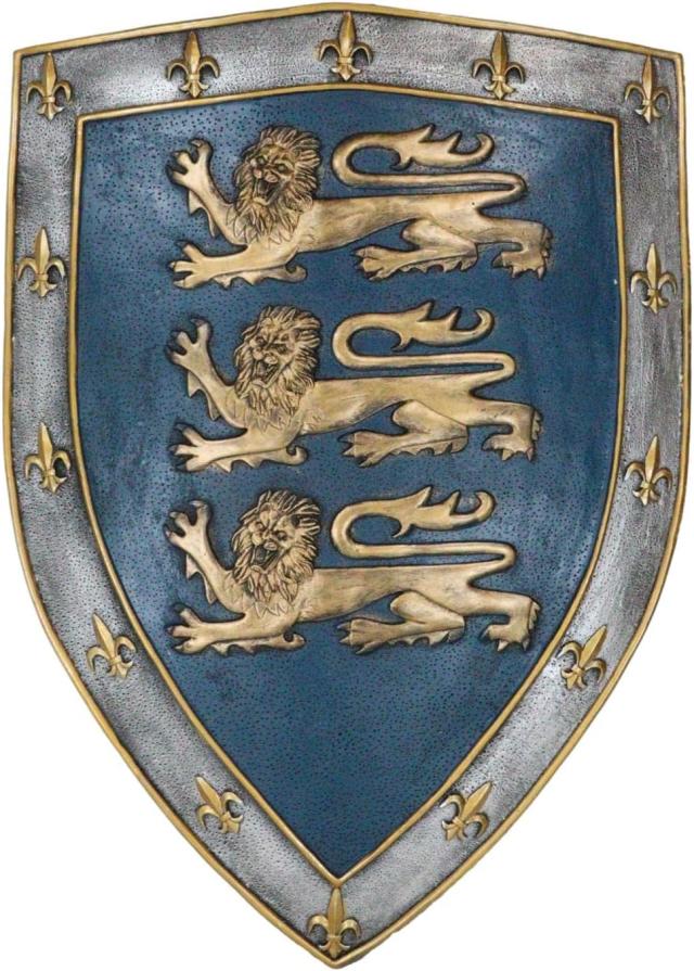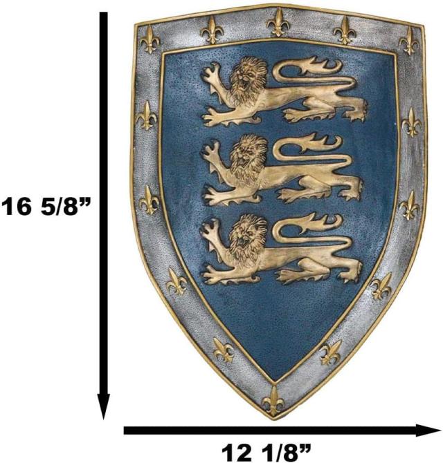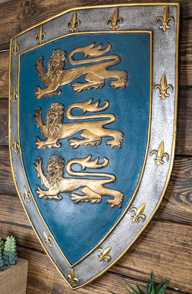 【Ebros Gift Large Medieval Knight Royal Arms of England Three Lions ShieldWall Plaque 18" Tall King's Crest Heraldry Renaissance Warrior KnightsDecorative Hanging Sculpture】
