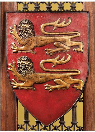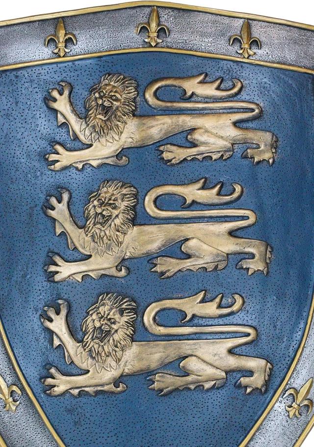 大きな中世イングランド王室の紋章「三匹の獅子」が付いた楯(シールド)壁掛け盾彫像 ルネサンス戦士騎士 装飾的な吊り彫刻 贈り物(輸入品