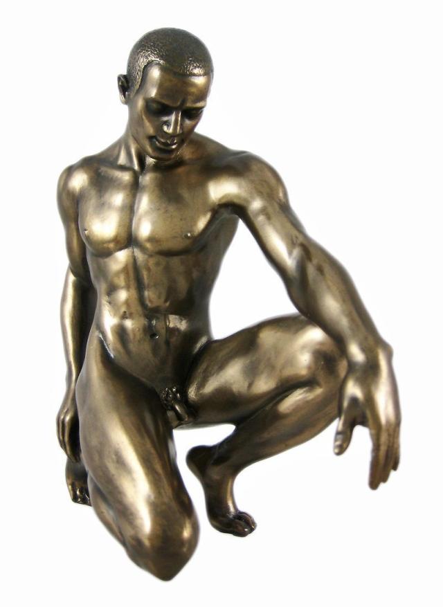 【Bronzed Finish Kneeling Nude Male Statue Sculpture】