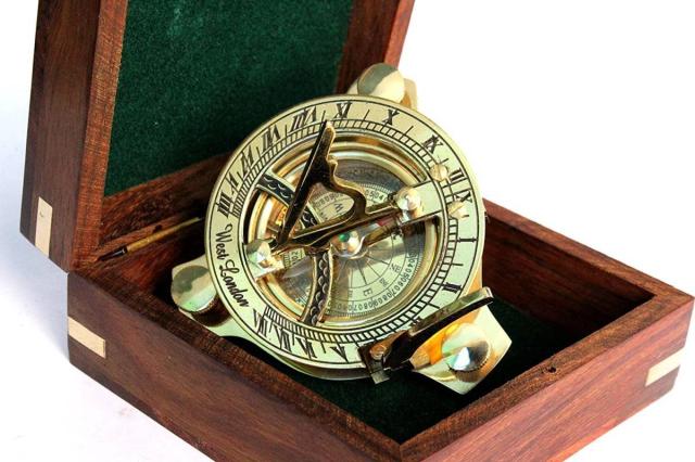【"Nautical West London Sundial Compass With HandCrafted Wooden box 4 inches】