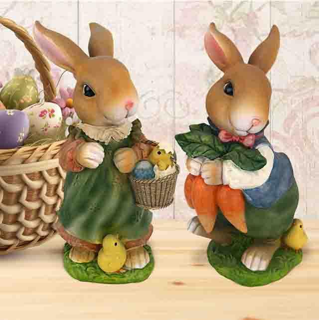 【Bunny Hop Lane Mother and Father Rabbit Statues: Set of Two】