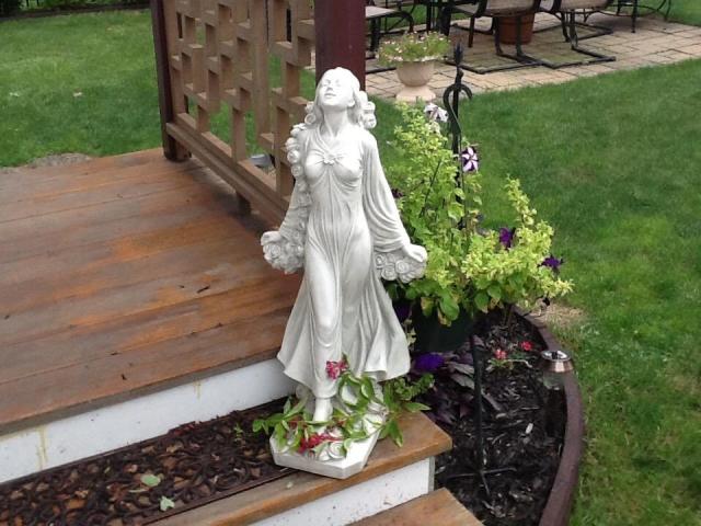 【フローラ:神聖な庭園を守護する女神像 ストーン風 ガーデン彫刻 アート彫像/ガーデニング 新築祝い 芝生 噴水 住宅展示場 プレゼント(輸入品)】