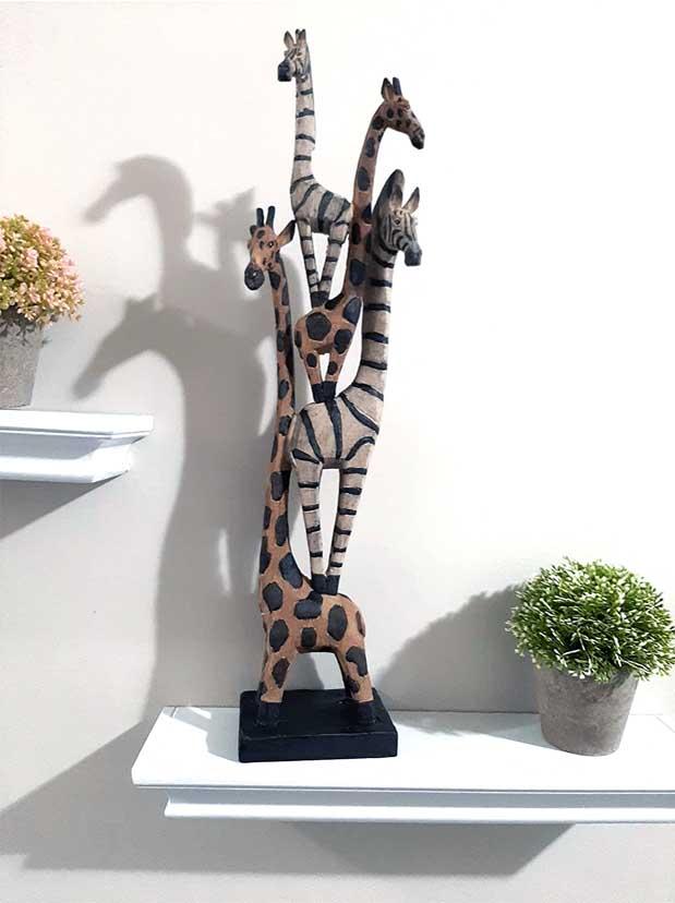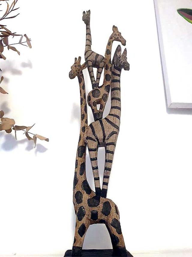 シマウマとキリンなどのアフリカ トーテム像 彫像