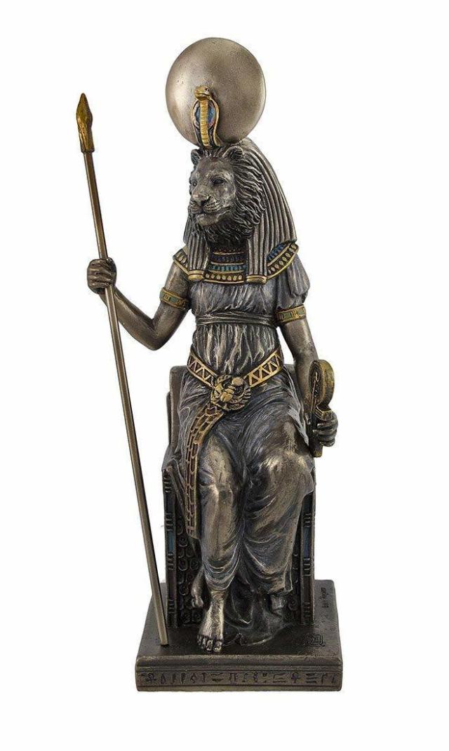 【Egyptian Goddess Sekhmet Sitting on Throne Statue】