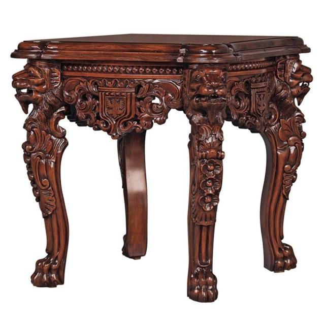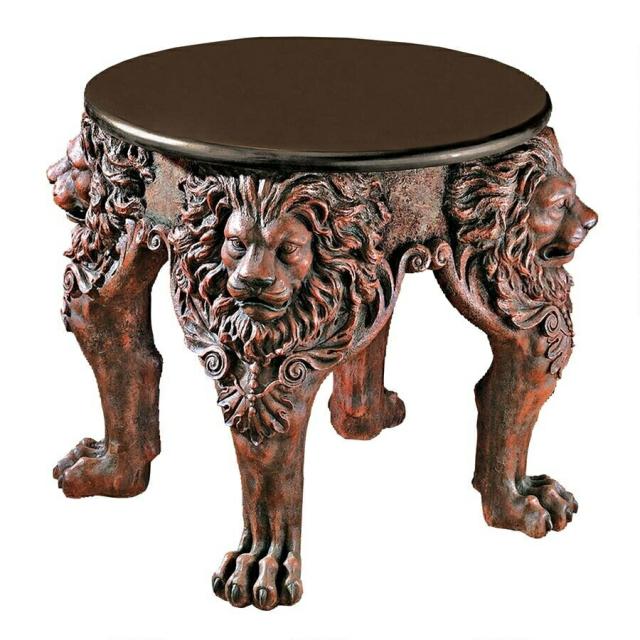 【中世ヨーロッパ風家具調 ラッフルズ卿のライオンが彫刻された足を持った サイドテーブル 西洋インテリア装飾彫刻 彫像(輸入品)】