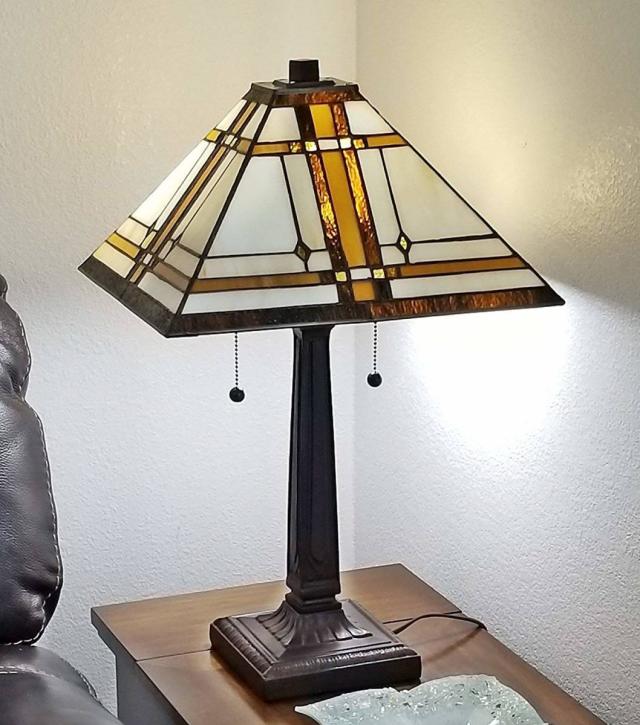 【Amora Lighting Tiffany Style Style Table Lamp Banker Mission 22" Tall