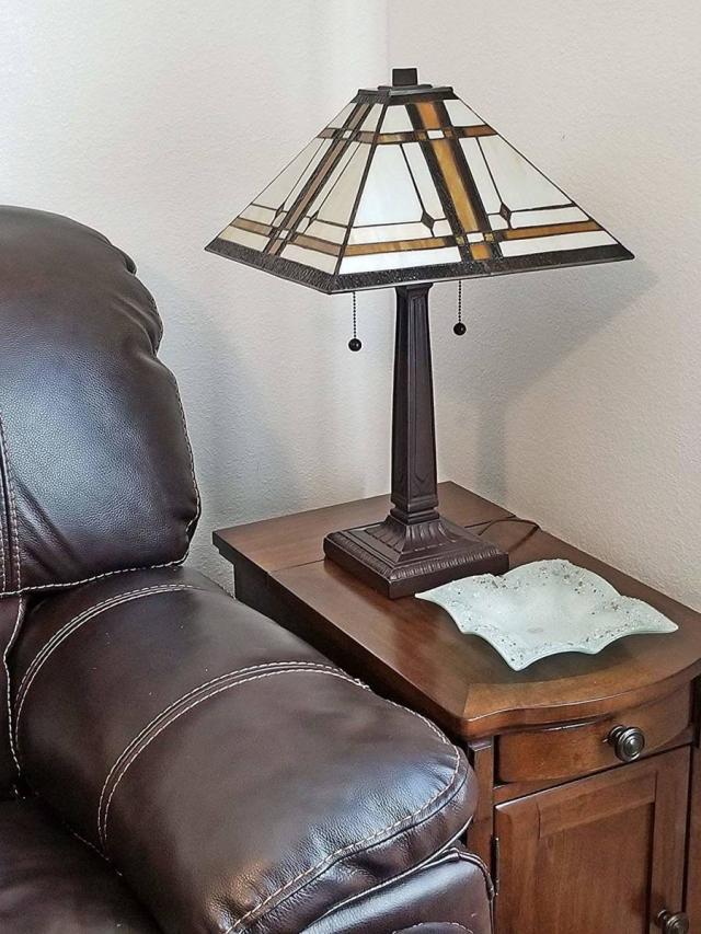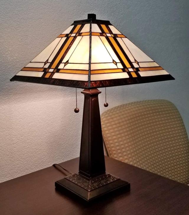 Stained Glass White Tan Brown Antique Vintage Light Decor Nightstand