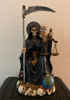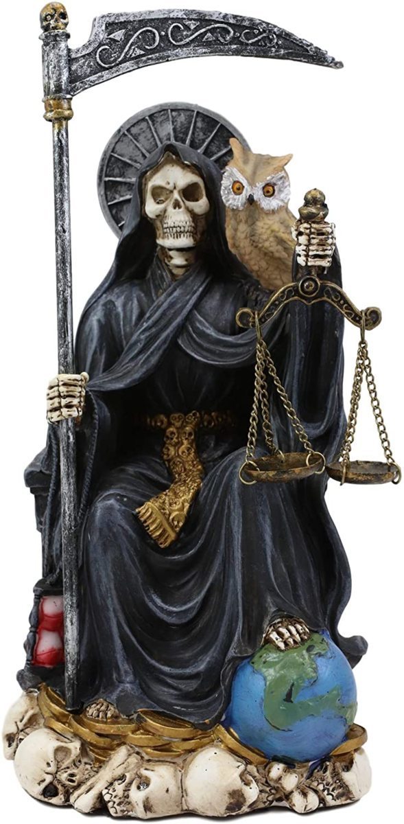 死の聖母 サンタムエルテ聖者 宗教的な黒ローブを着て座っています 高さ 約22cm彫刻 彫像/ ハロウィン 記念品 プレゼント贈り物(輸入品)
