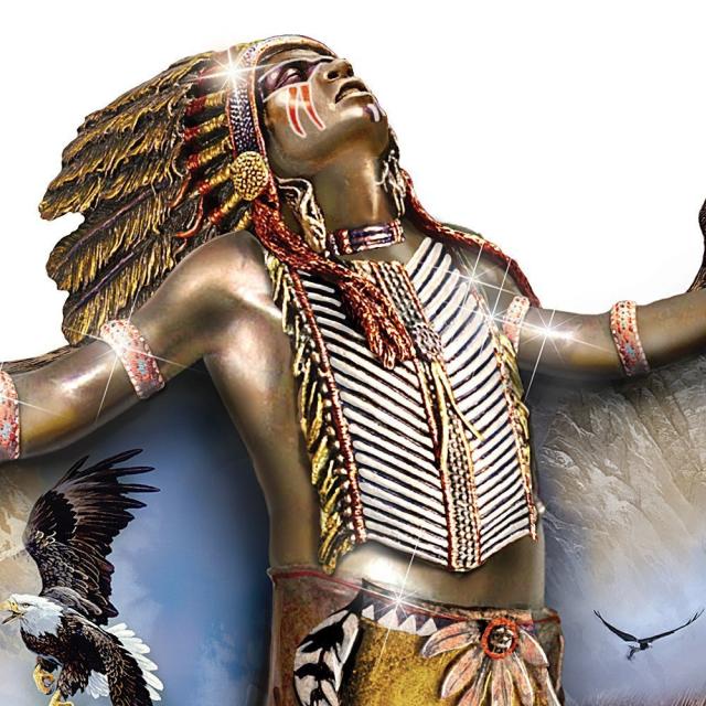 インディアンのシャーマン(呪術師)彫像