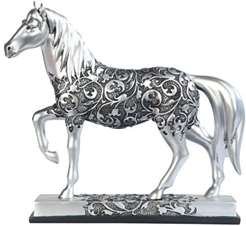 【ジョージ・S・チェン製、西洋彫刻 速足(はやあし)で駆ける シルバートーンの刻印デザインが刻まれた馬の彫像/奔馬 競馬場 インテリア プレゼント 贈り物(輸入品)】