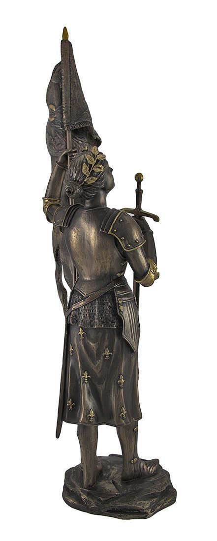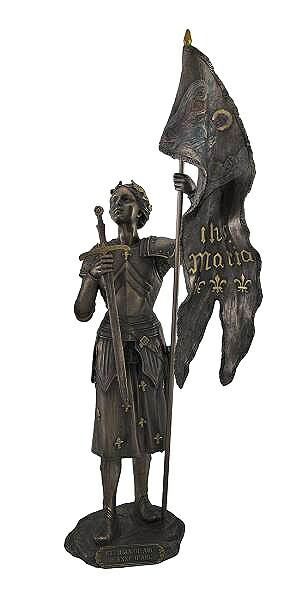 【Bronzed Saint Joan of Arc With Sword and Flag Statue】