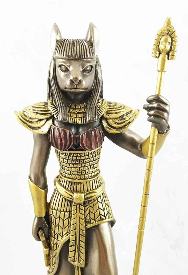 【Ancient Egyptian Theme Feline Goddess Bastet Ubasti Cat Human Form Figurine Faux Bronze】