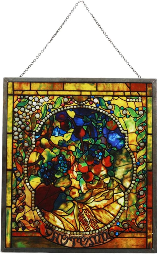【ルイス・コンフォート・ティファニー フォーシーズンズ 四季コレクション 秋(フォール)のステンドグラスアート/ ホーム&オフィスの装飾的な大聖堂モザイクスタイル風ガラス置物ギフト 玄関 新築祝い プレゼント 贈り物(輸入品)】