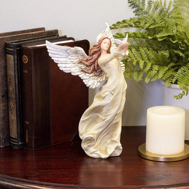 【鳩を抱く、エンジェル 天使の彫像 宗教ギフト彫刻コレクション 高さ 約25cm ホームインテリア装飾 小物オブジェ 新築お祝い 贈り物 プレゼント(輸入品)】