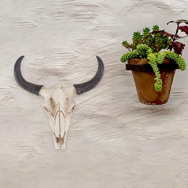 ロングホーン 雄牛 頭蓋骨彫像 壁彫刻 バイソン工芸装飾品 壁掛アート コレクション ホーム装飾 贈り物(輸入品