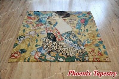 【グスタフ・クリムト作 扇子を持った 美しい女性 タペストリージャカード織 壁掛けアート装飾 コットン製 幅 約137cm×長さ 約137cm 壁掛けインテリア(輸入品)】