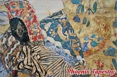 グスタフ・クリムト作 扇子を持った 美しい女性 タペストリージャカード織 壁掛けアート装飾 コットン製 壁掛けインテリア(輸入品