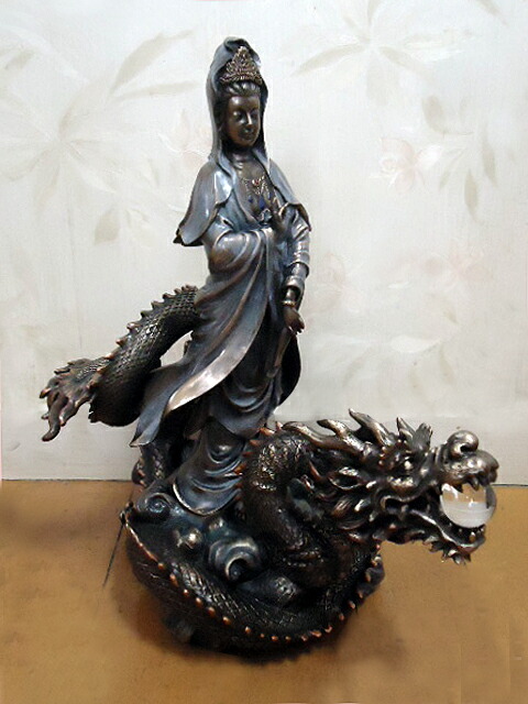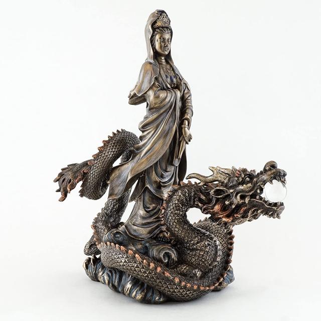 騎龍観音菩薩 龍頭観音、天龍夜叉の身を表し雲中にいる龍上に在る慈悲の観音様 ブロンズ風アンティーク仕上げ/ 新築祝い 贈り物(輸入品)