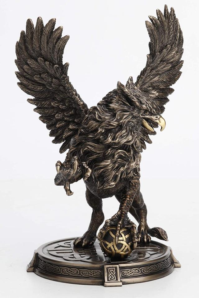 高さ 24.5cm ケルト模様のベース 伝説のガーディアン・グリフィン彫像 レジン・キャスト・アンティーク・ブロンズ風彫刻/ 贈り物 プレゼント(輸入品)
