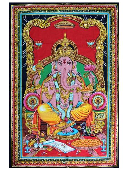 ヒンズー教 富の神様 ガネーシャ タペストリー(マルチカラー) 壁装飾インテリア ヨガスタジオ アロマショップ エスニック 贈り物 輸入品