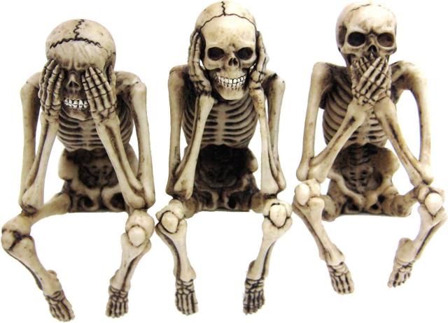 見ざる、言わざる、聞かざる、邪悪な骸骨達 置物彫像