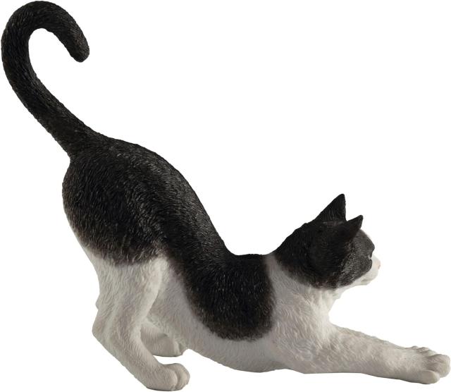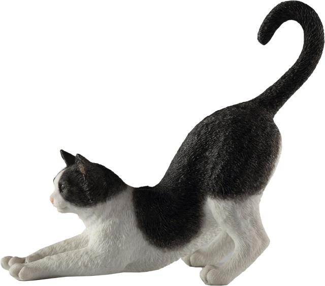 ストレッチする白黒の斑の猫の彫像長さ約12.4cm彫刻キャットネコフィギュア置物子猫インテリア置物アウトドア輸入品