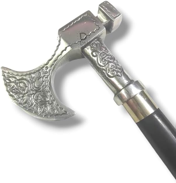 -----------------------Handmade Wooden Black Plain Walking Stick Cane with Victorian Silver Brass Axe Head Handle Cane |D M Vintage|