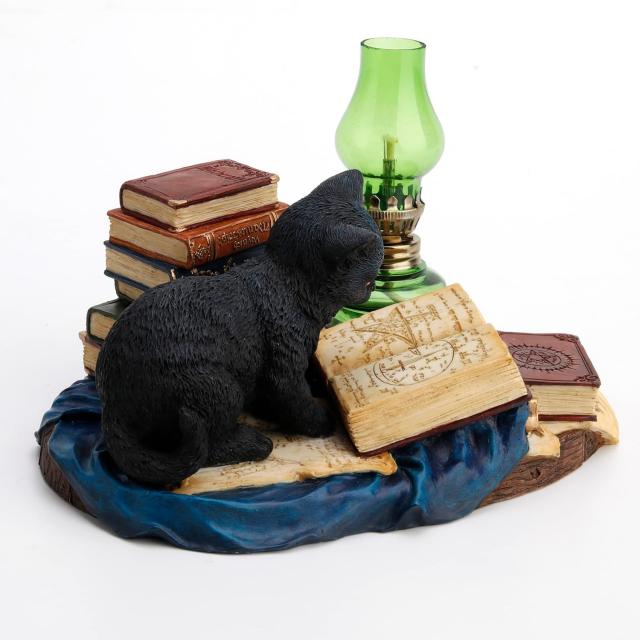 ヴェロネーゼ製 凶暴な魔法猫ネコ彫像 マジシャン オイルランプ 手描きレジン製ねこ置物彫刻キャットフィギュア置物 猫インテリア置物 ホームデコ人形 輸入品