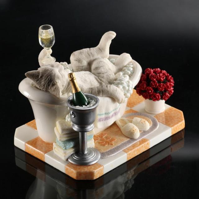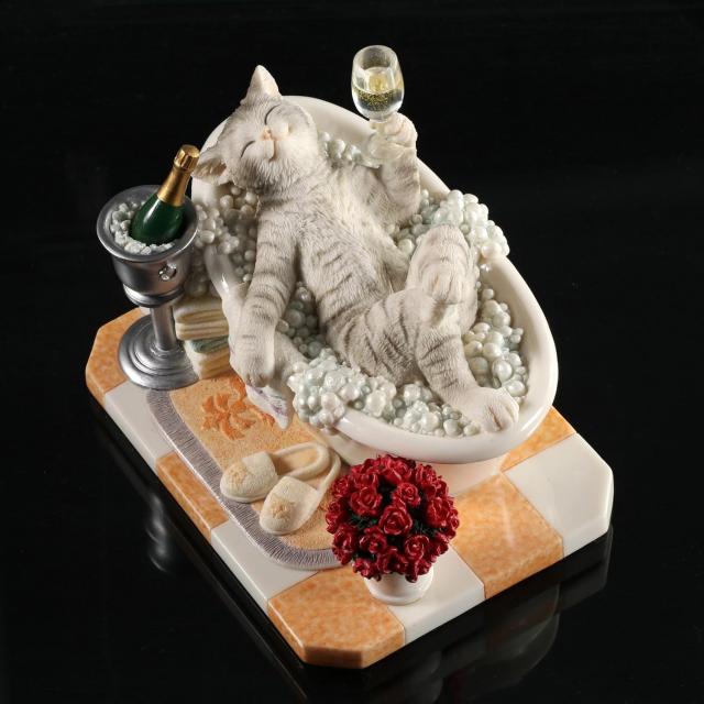 泡だてて入浴するねこネコバブル子猫彫像動物コレクション手描きミニチュア高さ約10.5cm置物フィギュア輸入品