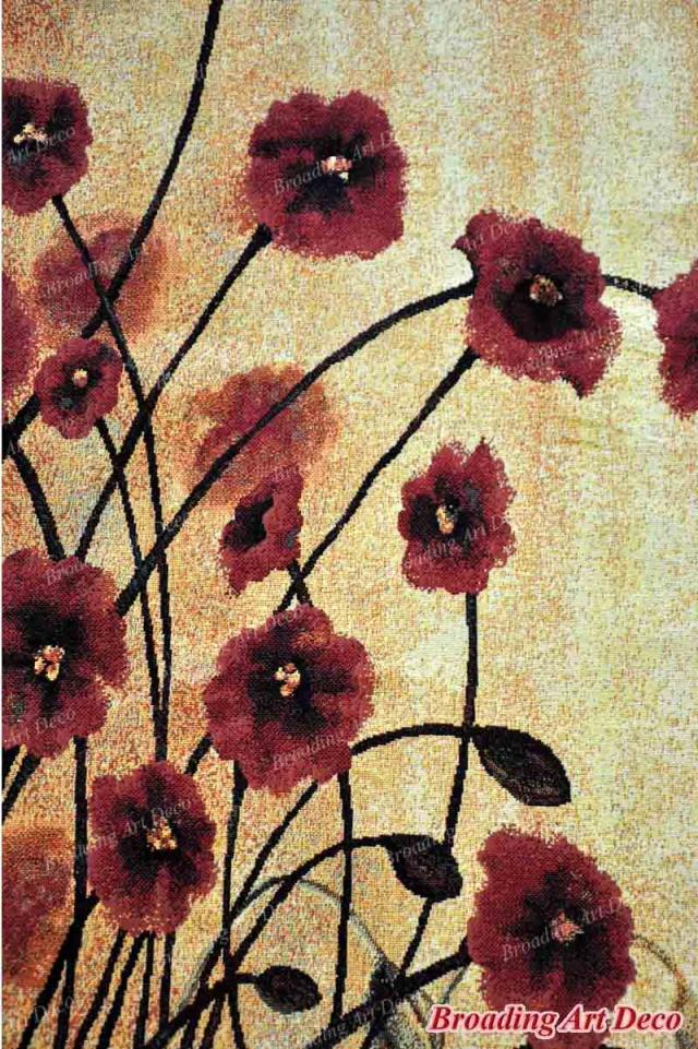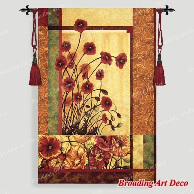 Beautiful Modern Poppy Flowers Jacquard Art Tapestry Wall Hanging Gobelin Home Textile Decor Aubusson 100% Cotton 135x85cm (Imported)
