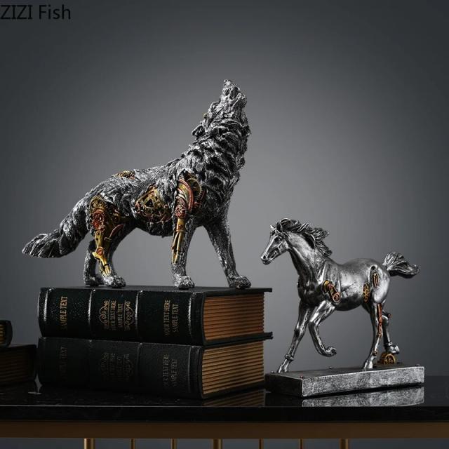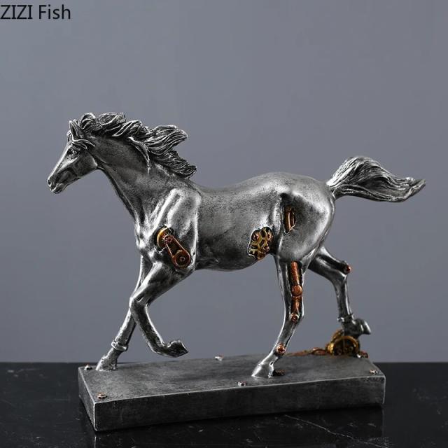 ---------------------Mechanical Horse Resin Crafts Decoration Animal Sculpture Abstract ModernHome Decoration Silver Gear Animal Figure Accessories
