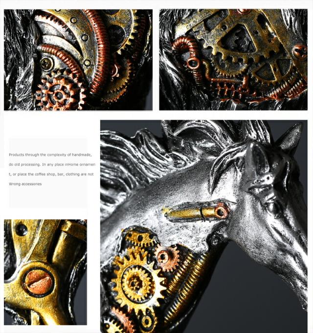 スチームパンク風メカニカルホース彫像機械式馬レジン工芸品装飾動物彫刻抽象的現代装飾ギアオブジェ動物フィギュア置物贈り物輸入品