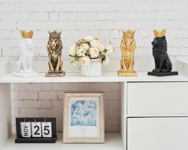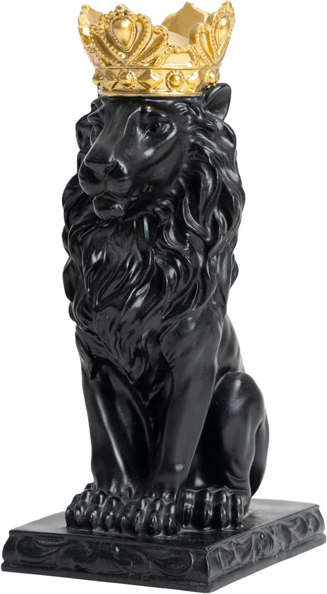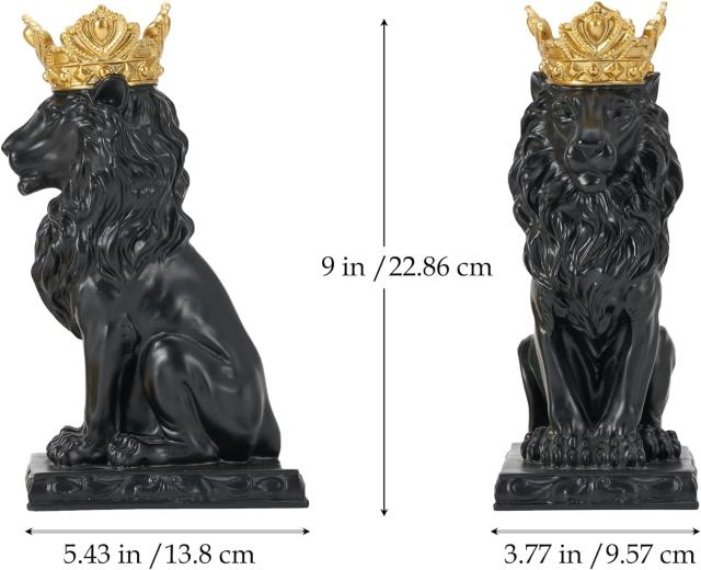 ---------------------AMOIENSIS Black Crown Lion King Statue, 9" H Lion Statue for Home Decoration, Gorgeous Lion Sculpture Chrismas New Year Gift for Leo Man Father Grandfather Husband