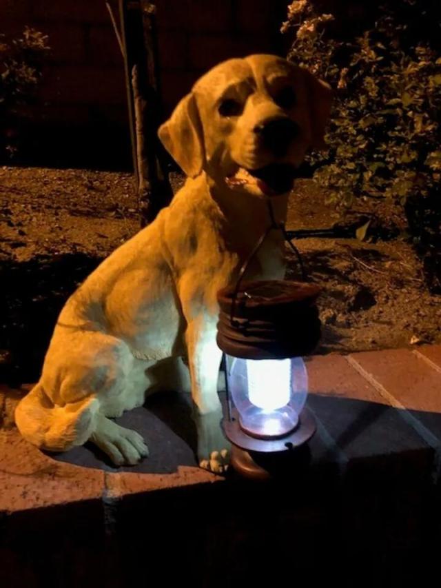 即納!ソーラーライト付きランタンを咥えた イエロー ラブラドールレトリバー犬彫像屋外装飾 ガーデンデコ庭園芝生 お庭が華やぐ!新築祝い贈り物輸入品s
