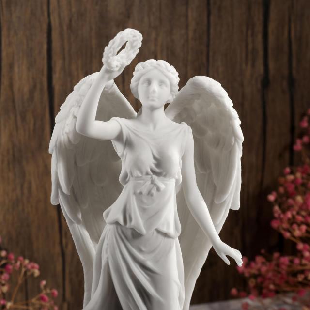 ヴェロネーゼ製 高さ 約29cm地球儀の上に立つ花輪を持った天使 大理石風ホワイト仕上げ彫像ホームデコレーション 装飾彫刻置物 プレゼント贈り物 輸入品