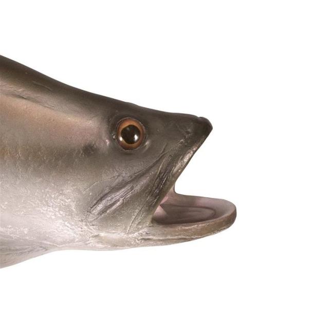 バラマンディ、またはアジアンシーバスは、海水と淡水のスポーツ魚で、壁に掛けると間違いなく注目を集める、威圧的で恐ろしい4フィート(139cm)のウォール トロフィーになります。この壮大なゲームフィッシュ彫刻は、強度を高めるためにグラスファイバーで強化された高品質のデザイナーレジン樹脂で鋳造され、本物のように手描きされているため、その大きな銀色の鱗が際立っています。この大型でディスプレイ品質の動物彫刻は、壁に簡単に掛けられ、あらゆる家庭、庭、レストラン、ホテルを本当に素晴らしいものに変身させます。
