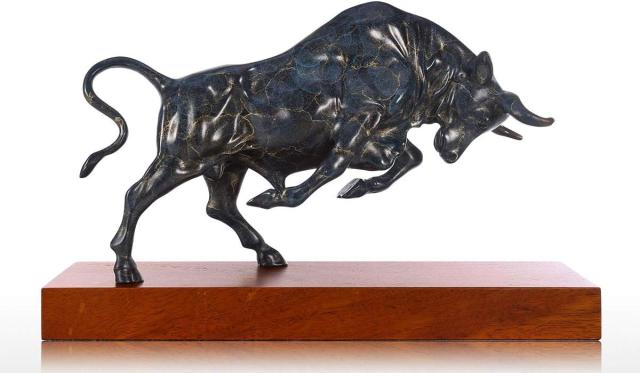 【風水的 幸運を呼ぶ ブロンズ製(チャージング・ブル)エバーグリーン色の雄牛の置物彫像 牡牛彫刻、勢いに満ちている開運ギフト ウォールストリート(輸入品)】