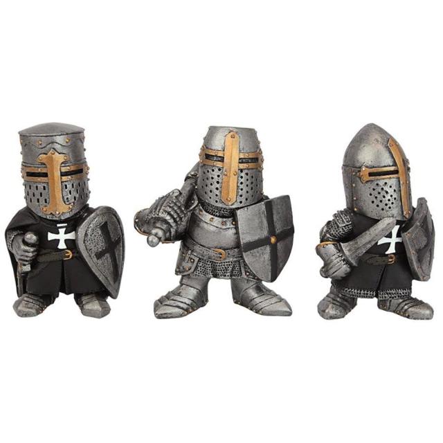 ゴシック王国のウィー中世十字軍騎士像3体セット彫像小さな騎士像セット十字軍フィギュア甲冑ナイト輸入品