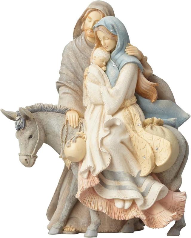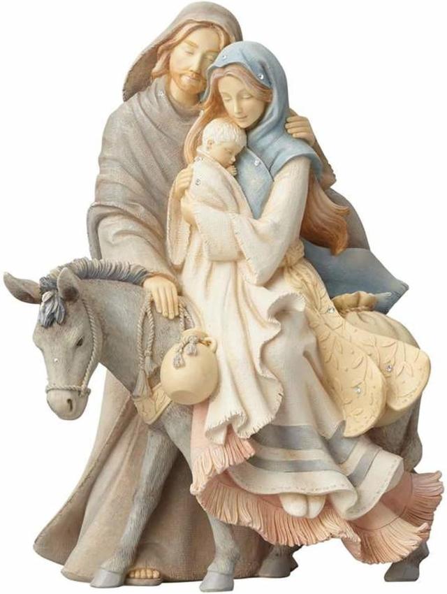 エネスコの聖書コレクションには、家族、信仰、家庭からインスピレーションを得た、希望と励ましの気持ちを高揚させるメッセージが描かれています。時代を超越したスタイルで彫刻された、このギフトは、大切な瞬間や愛する人を祝います。聖家族は、ロバに優しく運ばれた生まれたばかりの、平和の王子とともに旅を続けます。柔らかく、 ニュートラルカラーが休日の装飾を引き立てます。 15周年記念のアンダースタンプやクリスタルハートなどのディテールが施されています。