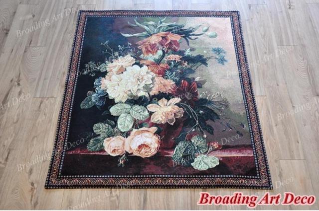 花のある静物 植木鉢壁掛けタペストリー ホームアートテキスタイル装飾,バスソン綿100% ファインタペストリー中世アートジャガード織家庭用装飾 幅 約108cm×長さ 約138cm 壁掛けインテリア装飾 ギフト輸入品