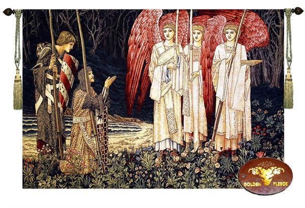 このタペストリーはジャカード織りで、吊り下げ用のポケットと底にあるポケットが並んでいます。