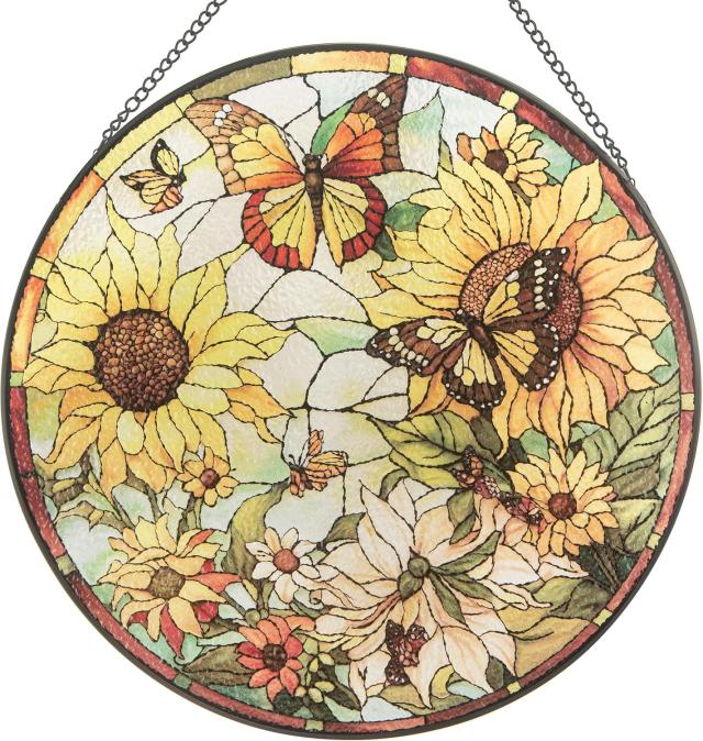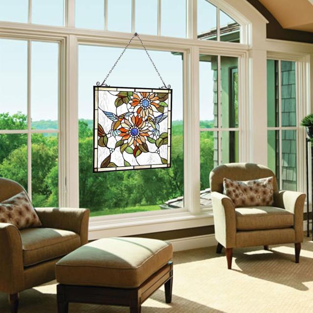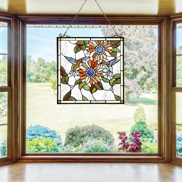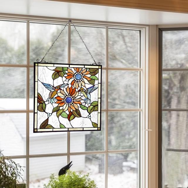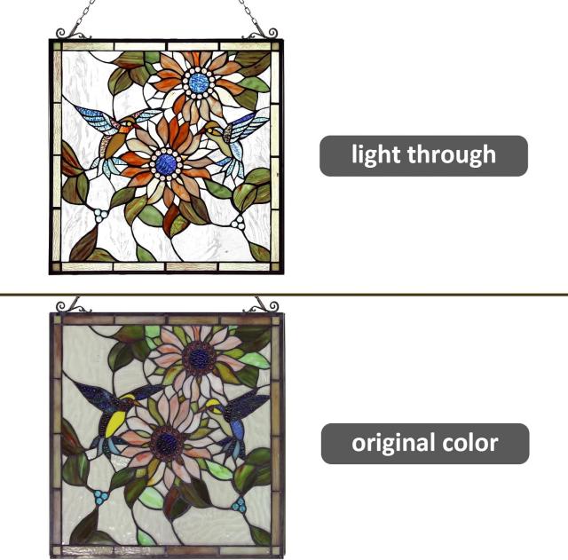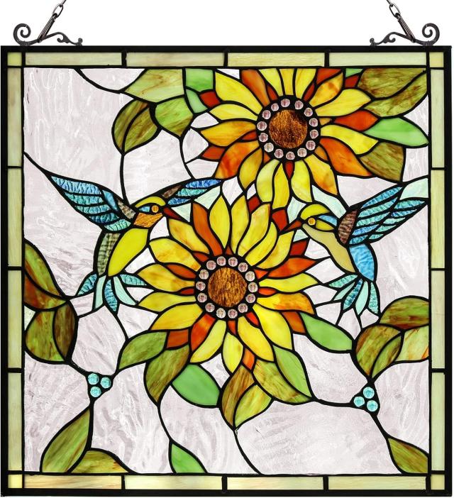 ----------------------Capulina Stained Glass Panels Window Hangings Sunflower and Birds Tiffany Style Traditional Art Handcrafts for Home Decor and Gifts
