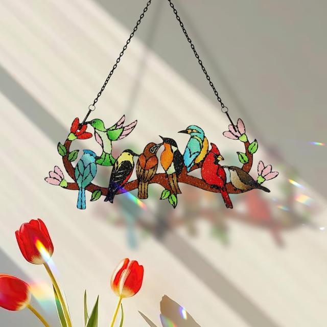 枝に止まる鳥 ステンドグラス サンキャッチャー カーディナル ハチドリ カワセミ両面ガラスパネル 窓吊り下げ装飾 鳥飾り 鳥好きのお母さんやおばあちゃんへのギフト家の装飾ギフト インテリア贈り物プレゼント 輸入品