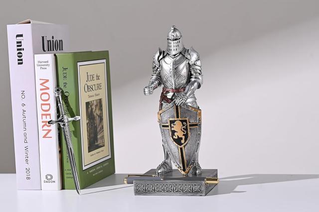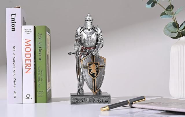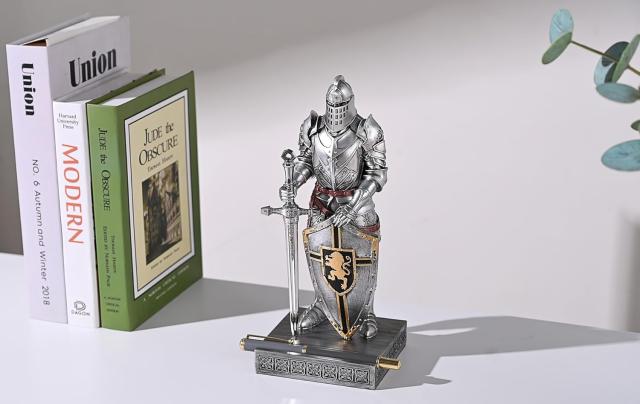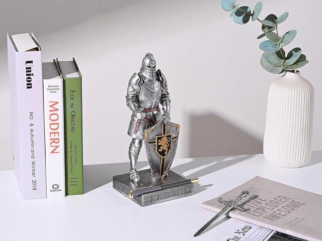 ----------------------King's Guard Ornament Knight Statue for Desk, Desktop Accessories Pen HolderPen Stand Paperweight for Office and Home (Silver)