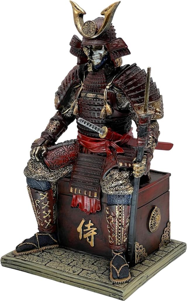 この日本のサムライ侍の彫刻は瞑想の形を採用しています。